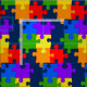O quebra-cabeça bloqueado remenda em um arco-íris das cores.