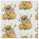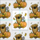 Espanhol Tibetano em queda - Tíbbie cômoda com folhas de outono em queda, pínus cones, abóboras e um amigo esquilo feliz segurando uma bolota. Copyright © Angi Laframboise. Dons sazonais engraçados para os amantes de cães.