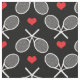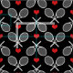 Raquetas de tênis branco cruzadas e corações vermelhos bonitos entre eles. O plano de fundo é totalmente personalizável. Preto apenas por padrão. Você pode escolher qualquer cor que quiser. Clique no botão 'personalizar' e escolha as cores fornecidas ou use o conta-gotas para obter mais cores.