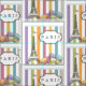O que poderia ser melhor que Paris na Primavera? Celebrar tudo o que é Paris com este design de novidade com uma bandeira de asas roxas sobre a Torre Eiffel e meia dúzia de macarões pastéis coloridos descansando na base. Um sinal de estilo boutique em ouro parece cadeias toca o nome da cidade (que pode ser personalizado). Tudo num fundo listrado pastel. Ilustração original e design por Designs Holiday Hearts.