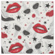 Rapariga da Alta Moda retrógrada - padrão divertido de lábios vermelhos, calçados pretos de salto alto, óculos escuros, esmalte vermelho de unhas, lipops e espuma de tinta, estrelas e pinceladas. Tudo em preto vermelho e cinza - você pode escolher qualquer cor de fundo que quiser para este design, escolhendo o botão personalizá-lo e depois a cor de fundo impressa