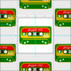Uma ilustração de uma fita cassete de anos 80 com um reggae, aspecto rastafári.