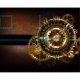 Relógios antigos e fantásticos com engrenagens de ouro e latão em um fundo marrom e enferrujado. Estilo Steampunk.