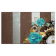 Relógio antigo e patenteado, adornado com joias, mãos de ouro e algarismos latinos com rosa de turquesa sobre fundo castanho e listrado. Estilo Steampunk.