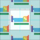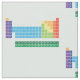 O tecido da mesa periódica tem um design repetido caracterizar a mesa periódica dos elementos, com cada grupo do elemento marcado em cores do arco-íris.