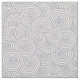 Círculos concentrados tecido com padrão repetido, apresentando designs neutra e geométrica, em cores azul e creme.
