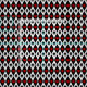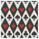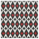 Corações vermelhos e diamantes e paus pretos e espadas sobre um fundo de formas brancas e pretas de diamante.