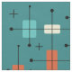 Este meio século moderno inspirado na era atômica tem linhas ousadas e formas geométricas em lacas, turquesas, amarelo e laranja.