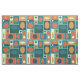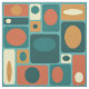 Este padrão de abstrato retroinspirado tem um fundo de turquesa e vários tamanhos de retângulos em amarelo e laranja.
