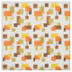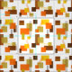Este tecido tem um design moderno século médio de retângulos e linhas em cores da década de 1970.
