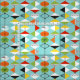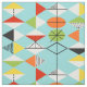 Este tecido de algodão penteado do Harlequin teste padrão retro é estilo moderno do meio século no seu mais fino. O vintage inspirou características que de design um fundo do aqua com fileiras das formas triangulares que formam um harlequin modela. As formas dois-tonificadas do diamante são amarelas, brancas, vermelhas, alaranjadas, pretas, verdes, e branco com acentos pretos. Mas a espera, lá é mais! Há igualmente uns ovals alaranjados, uns ovals verdes com starbursts pretos, e uns esboços dos carvões. O tempo marcha sobre, mas você sentirá como você encontrou uma explosão kitschy do passado com este tesouro geométrico colorido.