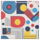 Tecido Retro Geométrico Abstrato Pat#10 Marinho Red ID106