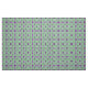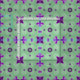 Formas intrincadas espaçadas em fundo azul. O Fleur-de-lis é a forma de âncora deste design. O número clássico de três pontos é equilibrado com um arranjo de estrelas de quatro pontos e floresce. As formas são principalmente roxas. O fundo é um padrão verde.