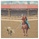 Tecido Roping Roping do boi da equipe do vaqueiro do rodeio de Cheyenne. Arena do rodeio com texto de Cheyenne no telhado e em uma equipe Roper. Note por favor que este design tem um olhar textured (veja o fim acima) que esta é parte de uma coleção com eventos diferentes do rodeio com este mesmo fundo da arena do rodeio.
