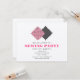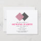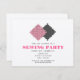 Um convite de festas de costura com uma ilustração de duas amostras de tecido. Uma amostra é rosa tweed e a outra é cinza. Personalize o texto na frente com detalhes da sua ocasião.