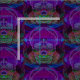 Um crânio do açúcar nas cores cor-de-rosa e roxas de néon.