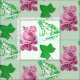 Bonito tecido rosa e verde-feminino. Vintage Love. Floral vintage mais leve com rosas bonito, mariposa e sapo clássicos.