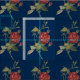 Linda safra, rosa vermelha sobre fundo azul escuro enfeita este tecido. Use este design único para projetos de decoração, colagem, artesanato e costura em casa!