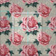 Este tecido apresenta rosas rosa-vintage com folhas verdes em um fundo neutro que não seja.