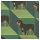 Este é um padrão divertido com um desenho fofo Rottweiler em vários tons de verde. Os padrões escuros e claros fazem uma ilusão ótica de profundidade.