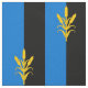 "Per pale azure e sable, um caule de três cattails escorregou e saiu ou." Avaliar o padrão do crachá popular da Barônia do Cachorro do Santo Sinside na Sociedade por Anacronismo Criativo.