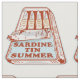 Uma ilustração vetorial engraçada de uma lata de sardinha. Tem o aspecto de um super-herói, logotipo de pop. O texto diz SARDINE TIN SUMMER. É uma design comida para qualquer pessoa que ame peixe em conserva/enlatado, ou alguém que viaja e coma barato para o fazer durante o verão.