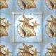 Tecido de Seashell e Starfish por ArtMuvz Illustration. Camiseta de concha, roupa de praia e presentes de costura e artesanato.
