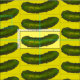 Tecido apresenta linhas de picles verdes em um plano de fundo amarelo. Criado de uma ilustração do marcador original.