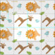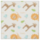 As características de design adoráveis do tecido um leão alaranjado, um girafa marrom, dois pássaros azuis, e uma folha verde e podem ser personalizadas com todo o texto da sua criança nome ou de sua escolha.