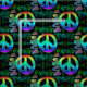 Teste padrão de símbolos de paz do arco-íris com a palavra "paz" contra um fundo escuro.