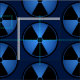 Tecido do padrão do símbolo de aviso de radiação em azul.