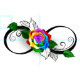 símbolo infinito com rosa arco-íris sobre fundo branco.