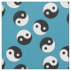 Símbolo Yin Yang tecido a preto, branco e azul turquesa.