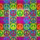 Os símbolos de paz do pop art em um tabuleiro de damas colorido projetam.