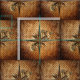 Crie seu visto Steampunk personalizado e seus acessórios com esse tecido fabuloso que apresenta blocos de estrelas de bússola metálica antigas em um fundo de bolinhas marrom estilo grunge.