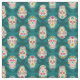 Este tecido padronizado tem o estilo Dia De Los Muertos ou Dia Mexicano dos Mortos com ilustrações de crânios de açúcar em creme com sotaques coloridos, cor-de-rosa, laranja, amarela, azul turquesa e verde-claro. Os gráficos do crânio são colocados sobre um fundo de verificação em camadas com acentos gráficos de rendas.