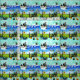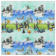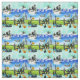 Uma design repetida de Uma erva verde-marinha azul-céu e nuvens brancas-peludas com um doce feliz Dia das Bruxas convidam a atmosfera