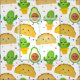 Este adorável design apresenta personagens de taco, cacto e abacate. Tecido bonito para qualquer tema de fiesta mexicana ou sudoeste.
