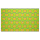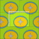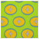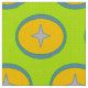 O tecido do círculo verde de estrelas com estrela em círculo laranja e azul está pronto para se tornar parte do próximo projeto de costura.