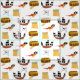 Um padrão temático de pirata fofo. Um padrão infantil perfeito para caçadores de tesouros e entusiastas de temas piratas. Chapéu pirata, navio pirata, papagaio, tesouro, crânio e bósforos e X marca o design de pirata.