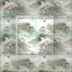 Um padrão repetitivo de arte japonesa com uma mistura de creme leve e verde macio, com reflexões de água para espaços como spas, estúdios de yoga, salas de meditação ou convites personalizados de casamento.