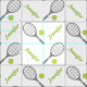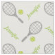 Tênis, bola e seu nome design de tecido personalizado apresentando um padrão de uma raquete de cinza, uma bola de tênis verde sobre fundo branco e seu nome em verde. Este design legal é o presente perfeito para o tênis ou amante do tênis na sua vida. Alguns elementos são cortesia de vectorportal.com.