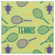 Raquetas de tênis roxas e verdes e bolas de tênis em fundo verde fresco. Padrão clássico para jogadores de tênis e ventiladores. Você pode personalizar o tamanho do padrão.