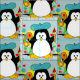Teste padrão artístico do pinguim. O gráfico bonito do desenho do pinguim com pintura colorida Splatters. Para amantes e/ou pintores do pinguim. Mostre sua faculdade criadora com esta arte do pinguim que você pode inteiramente personalizar. Mude a luz - cor azul do fundo a todas as cores de sua escolha.