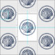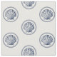 Uma parte de tecido que caracteriza um marinho original e um teste padrão branco que mostram uma ilustração roped do seashell do vintage.