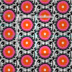Teste padrão étnico na cor brilhante com flores estilizados, folhas e formas circulares com textura sem emenda do vetor dos motivos do Cazaque, do turco, do Uzbeque para o impressão, forma do verão do primavera, papel de parede, tecido, © de matéria têxtil e ® Bigstock® - todos os direitos reservados.