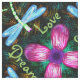 A libélula de néon é um teste padrão de repetição de libélulas verdes brilhantemente de incandescência com as asas iridescentes de turquesa que voam em torno de uma incandescência flor cor-de-rosa e roxa. As libélulas e a flor estão para fora brilhantemente contra o fundo primeiramente escuro do preto com shimmers da luz no alaranjado-ouro e no verde que dá o sentimento das reflexões na água na noite. Esta é uma mão original do teste padrão tirada pelo © 2015 de Sue Chastain.