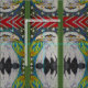 As cores e as formas do simbolismo patriótico dos Estados Unidos que inclui a cabeça de uma águia americana orgulhosa junto com estrelas, listras e um sinal de paz decoram este tecido em um teste padrão espelhado.