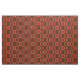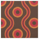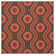 Tecido geométrico do teste padrão de onda do anel inspirado do 60's-70s com esquema de cores do vintage no marrom, na laranja e no vermelho.