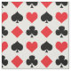 Tecido do divertimento com corações, pás, diamantes, e clubes em vermelho, em preto, e o branco.
